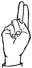 На ћирилици написано БЛАЖА БЕКРИЋ састоји се из 11 слова [?]. Исписано ћириличном једноручном азбуком за глувонеме: